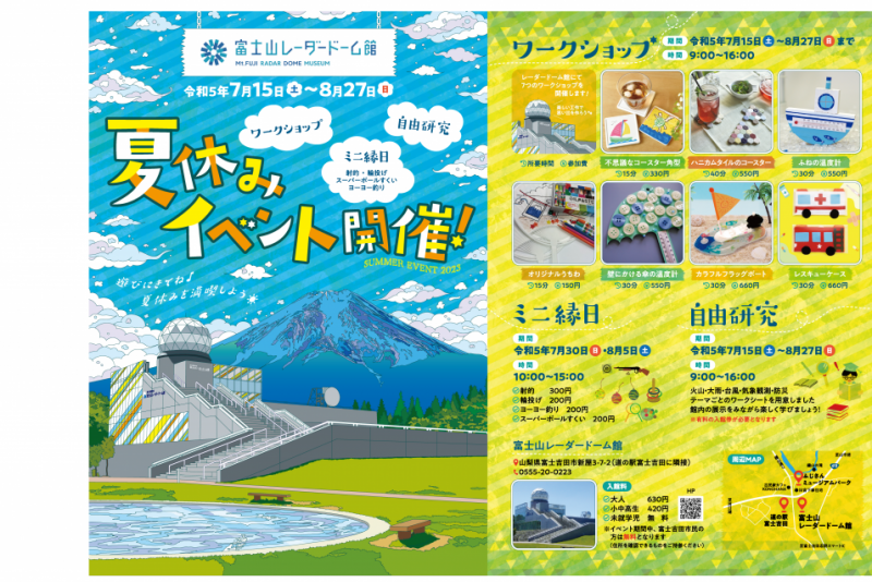 富士山レーダードーム館では夏休み期間中、皆様にお楽しみいただけるようイベントを開催いたします。