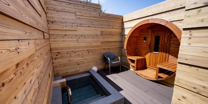 イン・ザ・富士は富士山駅徒歩1分、全室独立型ユニットタイプ(専用駐車場付き)の宿泊施設です。また最大5名まで宿泊可能な客室は、キッチン完備で多彩な滞在スタイルに対応し、一部客室にはプライベートサウナと天然水の水風呂を備え、極上の癒しを提供しております。