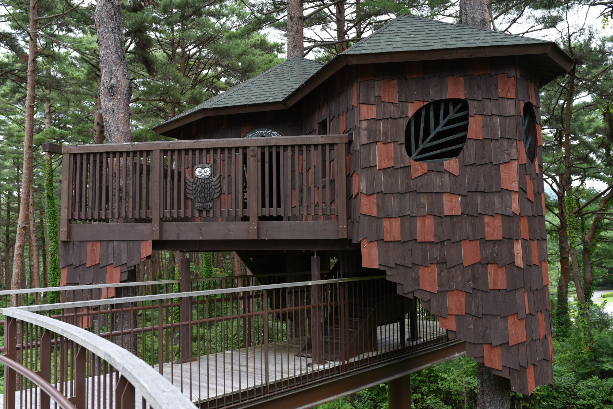 キポキポの裏手にあるアカマツやカラマツなどの豊かな緑に囲まれた森も、見どころのひとつです。