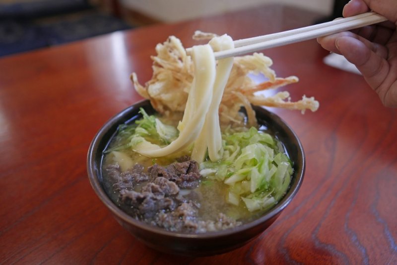 天ぷらが山のように盛ってあるミニ天丼が評判の食工房桑原では、コシのある麺に味噌と醤油のあわせ出汁を入れたうどんが楽しめます。オススメのうどんは肉天うどんで、サクサクの天ぷらがのったうどんは美味しいと評判です。ゴマと一味の効いた真っ黒なすりだねを入れるとより味わい深いうどんに早変わりします。ラーメンや定食などうどん以外のメニューも充実しているのが嬉しいところです。