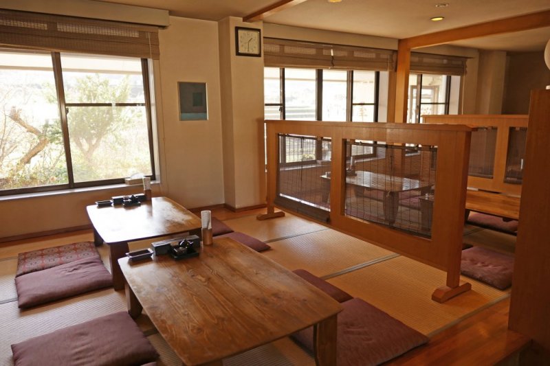 元々はスナックを営んでいたため、座敷席、テーブル席、カウンター席が揃う珍しい店構えのサファイ屋。このお店の人気は富士吉田市民がこよなく愛する湯盛りうどん。お出汁の代わりにうどんの茹で汁をうどんにかけ、鰹節や野菜などのトッピングをのせていただくうどんで、お好みで醤油やすりだねをかけていただきます。サファイ屋では、一般的な湯盛りうどんだけではなく、納豆湯盛りうどんが一押しです。