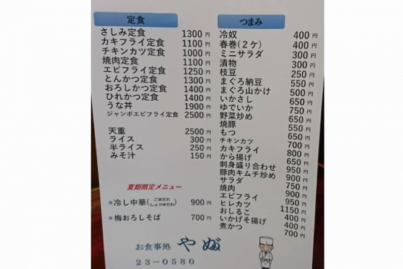 | 料金 | ◉主なテイクアウト・デリバリー商品 天丼(並) かつ丼 親子丼 焼肉丼 うな丼 焼肉定食 ヒレカツ定食 チキンカツ定食 えびフライ定食 ざるそば 他 主なデリバリー商品 各種丼もの、めん類、定食 ※セットメニューは配達できません |