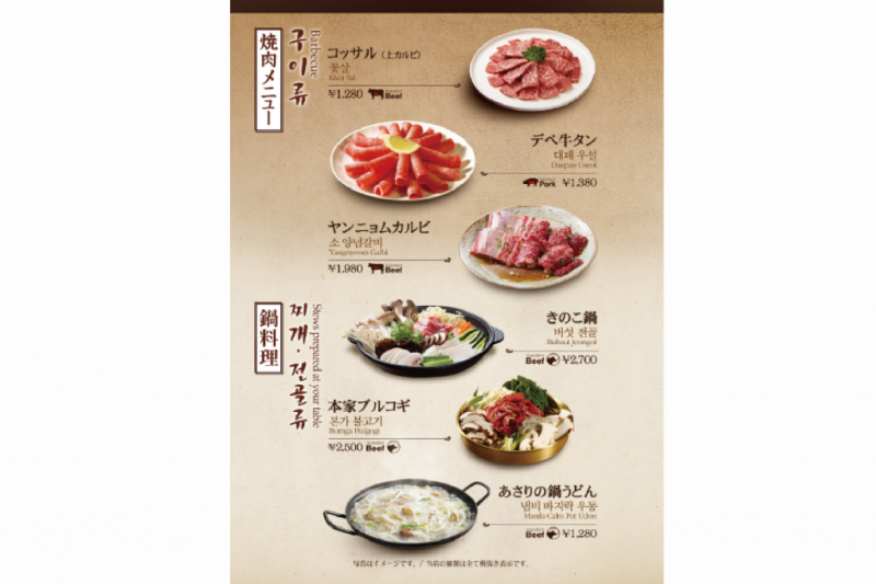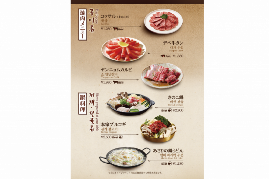 | 料金 | 主なテイクアウト商品(税抜価格) 焼肉弁当700円 お食事メニュー880~1280円 一品料理880~1980円 ※焼肉弁当は、5個以上の注文から承ります。 ※予約時要相談 |