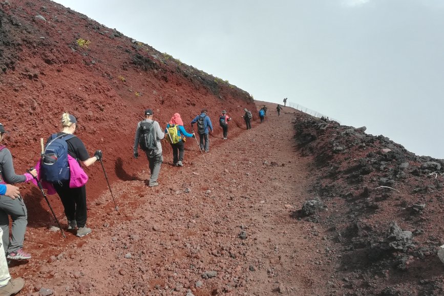 下山道【吉田口】 げざんどう よしだぐち 晴れの日には砂埃が多くなる。 下山道はブルドーザーと共用です。 小さな落石もありますので、ヘルメットもお忘れなく。 下山道はスコリアが多く、滑りやすいのでゆっくりと。 砂埃も多いので、マスクやサングラスを。転倒しないように一歩ずつ。 下山道はスコリアで滑りやすくなっており、登山した疲れも出てくるのでゆっくりと。 トイレの無い区間があるので、よく確認を。 登下山道通行可能期間:7月1日~9月10日 カテゴリ 体験 世界遺産・歴史・文化 自然・花・紅葉・天然水 住所 〒403-0005 山梨県富士吉田市上吉田北向 ツイート シェア 周辺情報を表示する 歴史・文化 自然・景観 温泉・レジャー 体験 おみやげ・直売所 Google Mapの読み込みが1日の上限を超えた場合、正しく表示されない場合がございますので、ご了承ください。